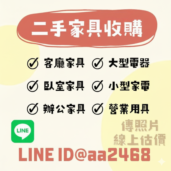 如果你家中正有想處理的家具與家電,現在就加入 LINE:@aa2468,上傳照片進行免費估價,讓專業團隊協助你快速安排到府收購。