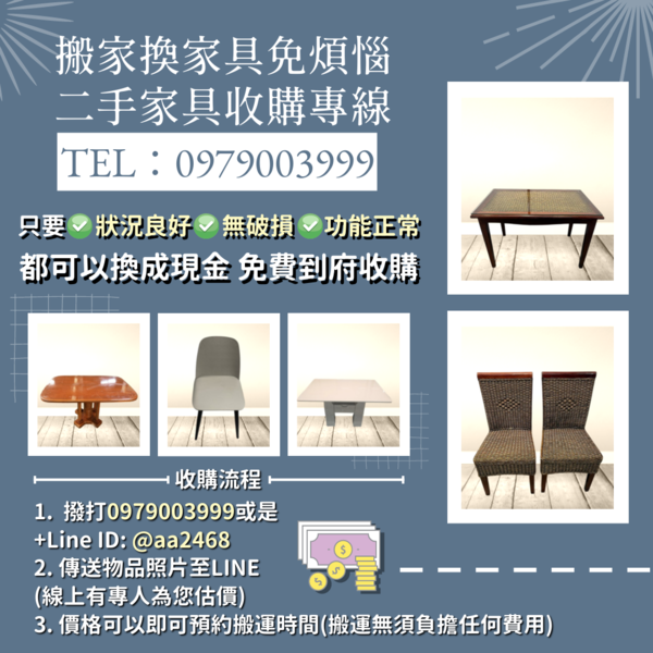 舊家具舊家電輕鬆變現 收購到府服務最便利0979003999